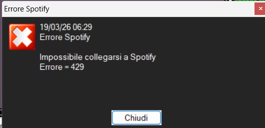 Ciao a tutti, dopo aver installato l'ultimo aggiornamento di Mb e cioè la versione 8.31.3.1 ogni cambio brano mi appare l'avviso di errore di Spotify.