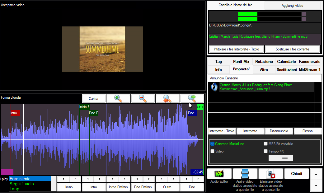 2) come fare ad inserire in automatico il disannuncio canzoni usando sempre la voce sintetica.