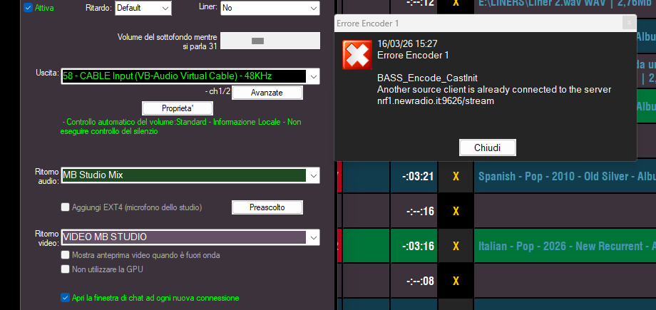 MB LIVE is a software that stream a live audio\video feed from any place to an MB STUDIO PRO automation in the main radio studio. MB LIVE make use of a TCPIP connection. This program is free for MB STUDIO PRO users