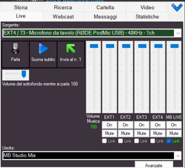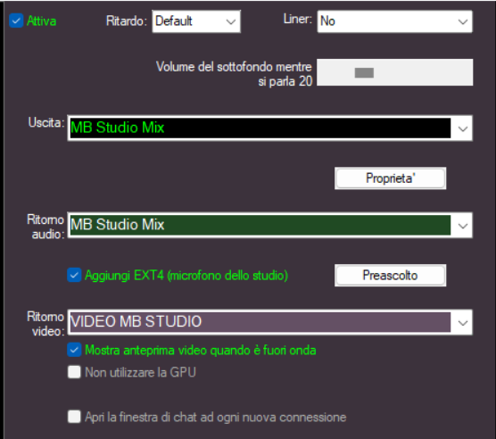 Salve, oggi abbiamo configurato mb studio ed mb live perchè possano interagire due speakers, uno in regia (con mb studio) e l'altro in esterna (con mb live).