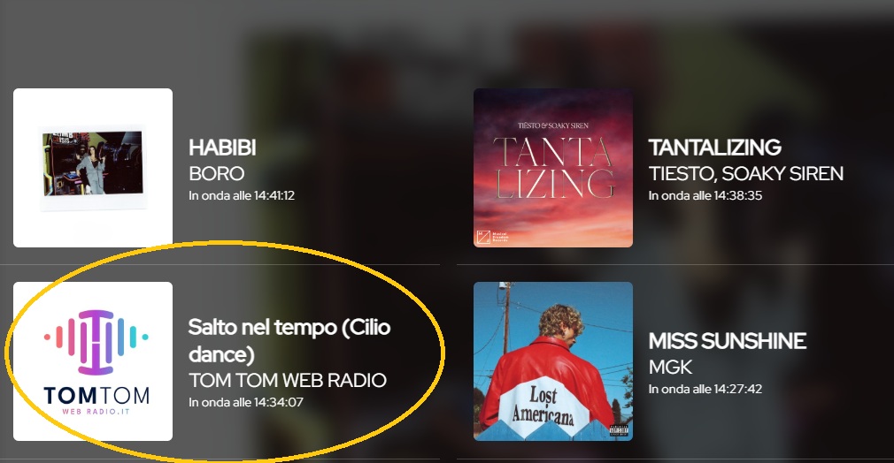Mi accorgo che tra i brani suonati intercetta anche i jingle