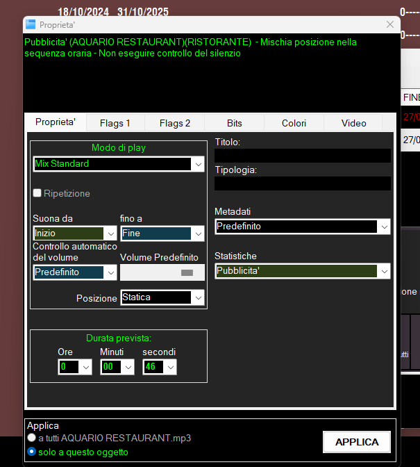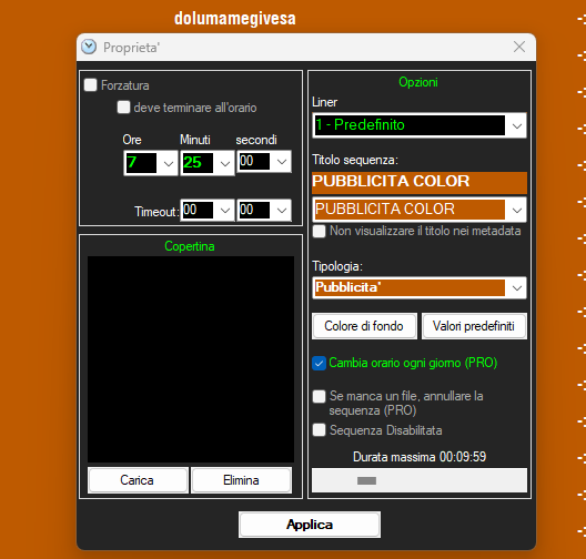 Ciao Maurizio come avviene in Lista sequenze pigiando nuova secquenza appare proprietà e sotto gli orari la possibilità di inserire la copertina.