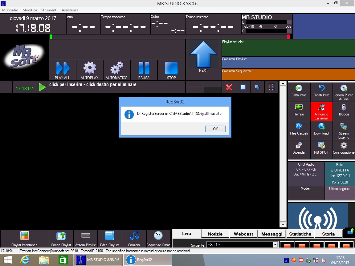 ho recentemente installato Windows 8.1 su una nuova macchia dopodiché ho installato MBRadio versione 8.58.06.