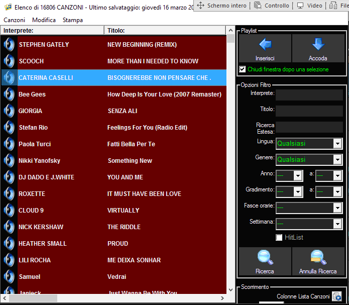 1) spostare un'elemento: non riusciamo a spostare ad esempiu un jingle prima di una canzone o una canzone sopra e sotto,. si puo solo con il mouse cliccando nella zona sopra i dettagli del file.. con touchscreen lo spazio è poco ed è facile visualizzare la slide delle proprietà, è possibile "allargare in altezza" le righe?