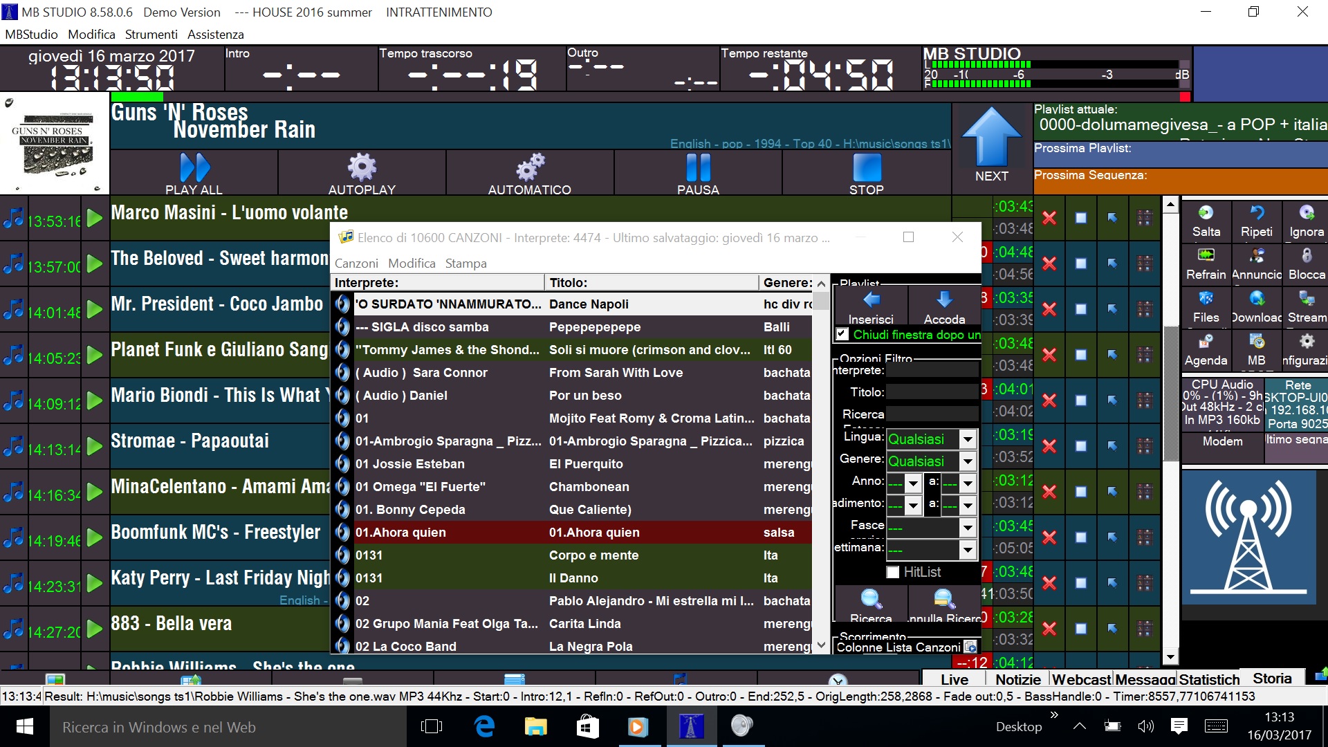 questo nel pc di prova, le canzoni sono su una sdxc da 128gb, non so se puo dipendere da quello o se è un problema di questa versione di mb studio