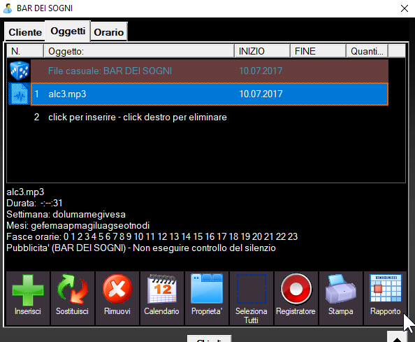 RadioBolognaUno wrote: il tasto RAPPORTO non apre "STAMPA", ma "CALENDARIO", cioe' quello per la programmazione.