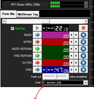stessa funzione come nel preascolto, scelgo il liner e lui lo mette in onda (in base a come si e' programmato, o prima o dopo) , in questo modo si evita che, per qualche disattenzione la programmazione sia sincronizzata , evitando che il prima vada in onda, e lo sponsor no, xche si e' dimenticati di mettere la data fine alla prima parte..