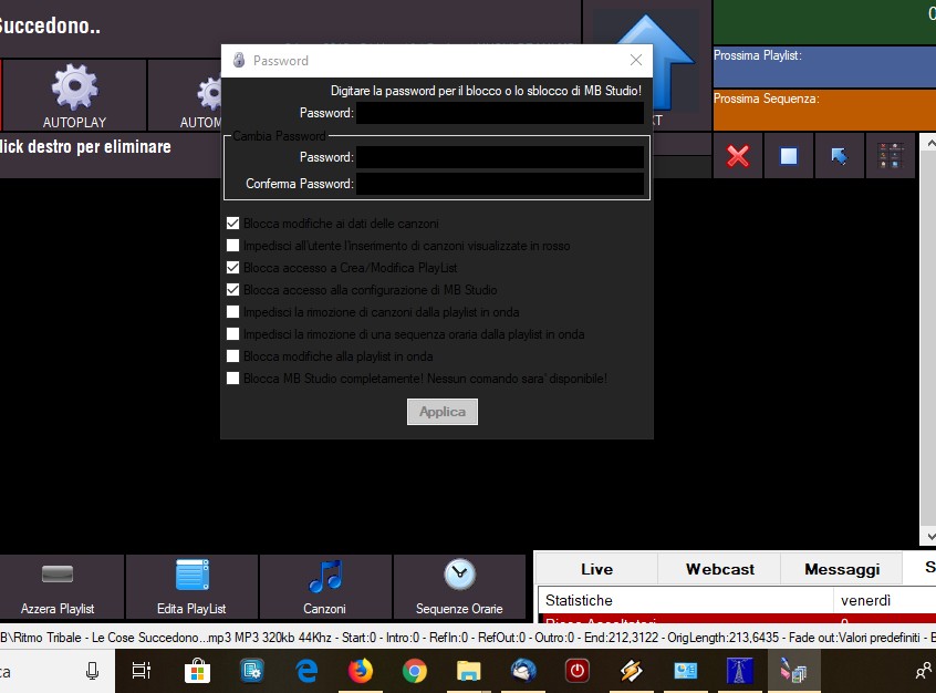 Altra cosa ho notato che dopo i vari aggiornamenti non scriveva correttamente nello spazio Playlist attuale, mancava sempre la prima lettera tipo, Rotazione non stop da otazione non stop e così via.