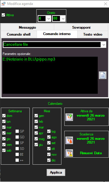 Cioè impostare per esempio scadenza il 25 marzo alle ore 14.00, quindi dopo le 14 non deve essere richiamato.