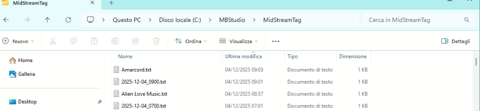 non è che il file .txt è finito nella cartella midstreamtag? Vengono spostati lì quando il relativo file viene messo in onda