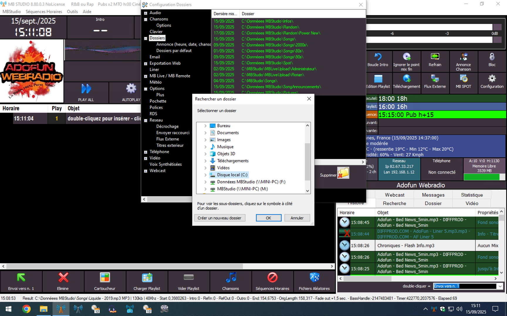 L'accès FTP serait bénéfique, sachant que je fais une sauvegarde de données toutes les 6 heures. Sauf que je n'arrive pas à assigner un dossier FTP dans les paramètres de MB STUDIO.