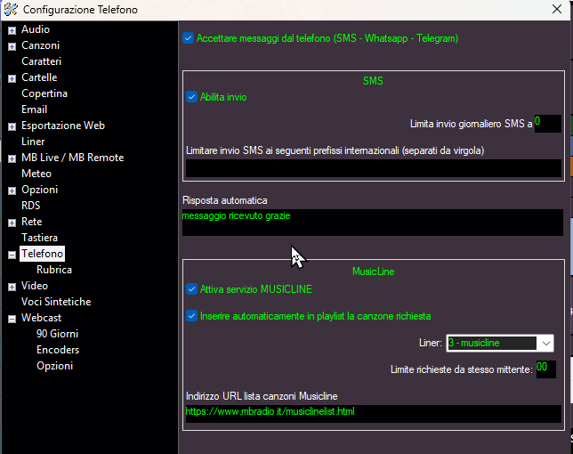 Abbiamo tolto il personalizzato e abbiamo lasciato solo Messaggio ricevuto grazie e adesso la risposta e ok ma il contrario non anno risposta con le richieste musicali
