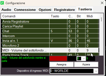 Inoltre, vorrei sapere se sia possibile fare una cosa simile con il comando MIDI dello slider del volume di Sottofondo del Parla Voice Track.